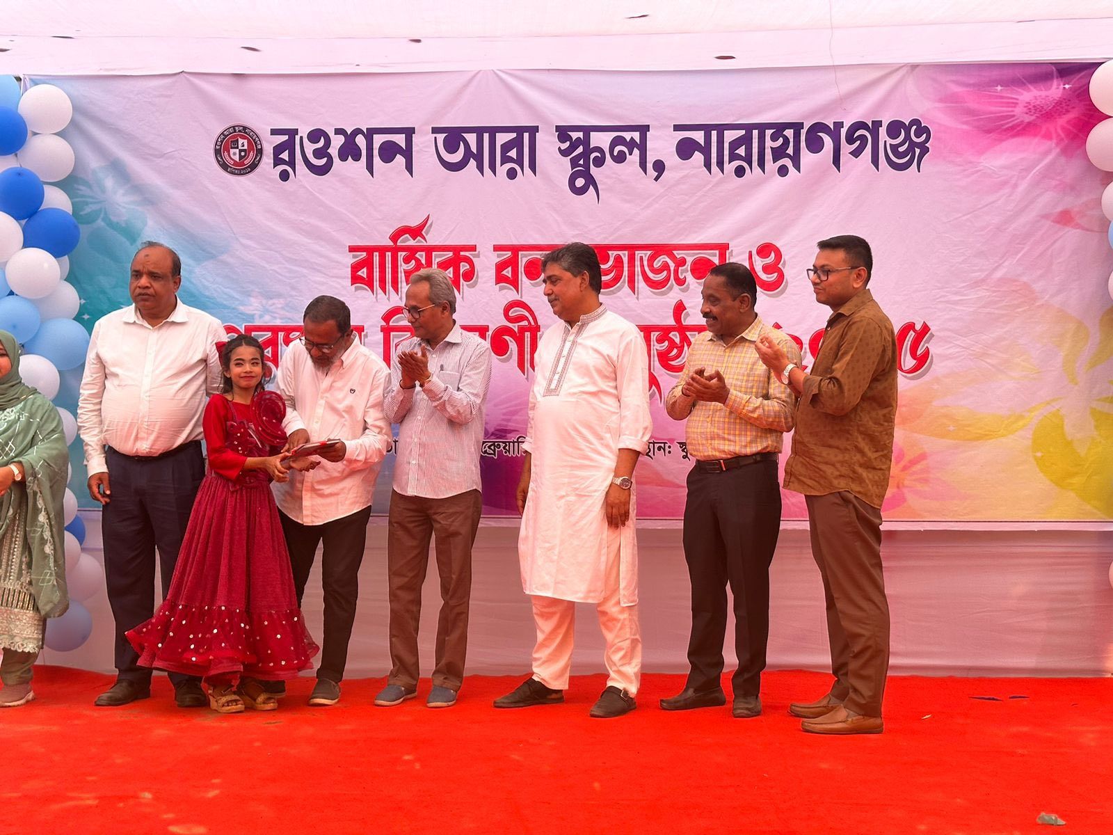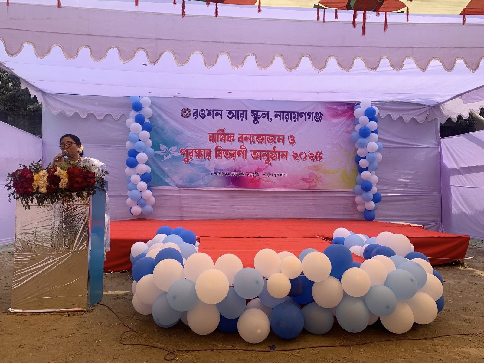 গত ২২ শে ফেব্রুয়ারি ২০২৫ অনুষ্ঠিত হয় রওশন আরা স্কুলের বার্ষিক বনভোজন ও পুরস্কার বিতরণী অনুষ্ঠান। উক্ত অনুষ্ঠানে উপস্থিত ছিলেন নারায়ণগঞ্জ কলেজের সম্মানিত অধ্যক্ষ জনাব রুম্মন রেজা স্যার, বিশিষ্ট শিক্ষাবিদ চেন্জেস স্কুলের পরিচালক জনাব মাকসুদ ইবনে রাহমান স্যার, রওশন আরা স্কুলের প্রতিষ্ঠাতা জনাব মালিক সোহেল সারোয়ার স্যার, পরিচালক জনাব সাইফুল ইসলাম পলাশ স্যার এবং প্রধান শিক্ষক ফারহানা হক ম্যাডাম। এছাড়াও বিদ্যালয়ের সকল শিক্ষকবৃন্দ, অভিভাবকবৃন্দ ও শিক্ষার্থীরা উপস্থিত ছিলেন।