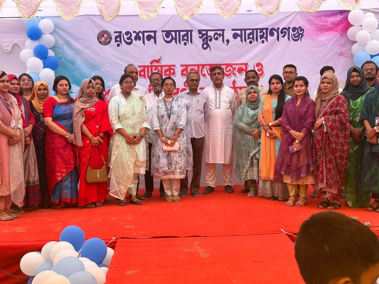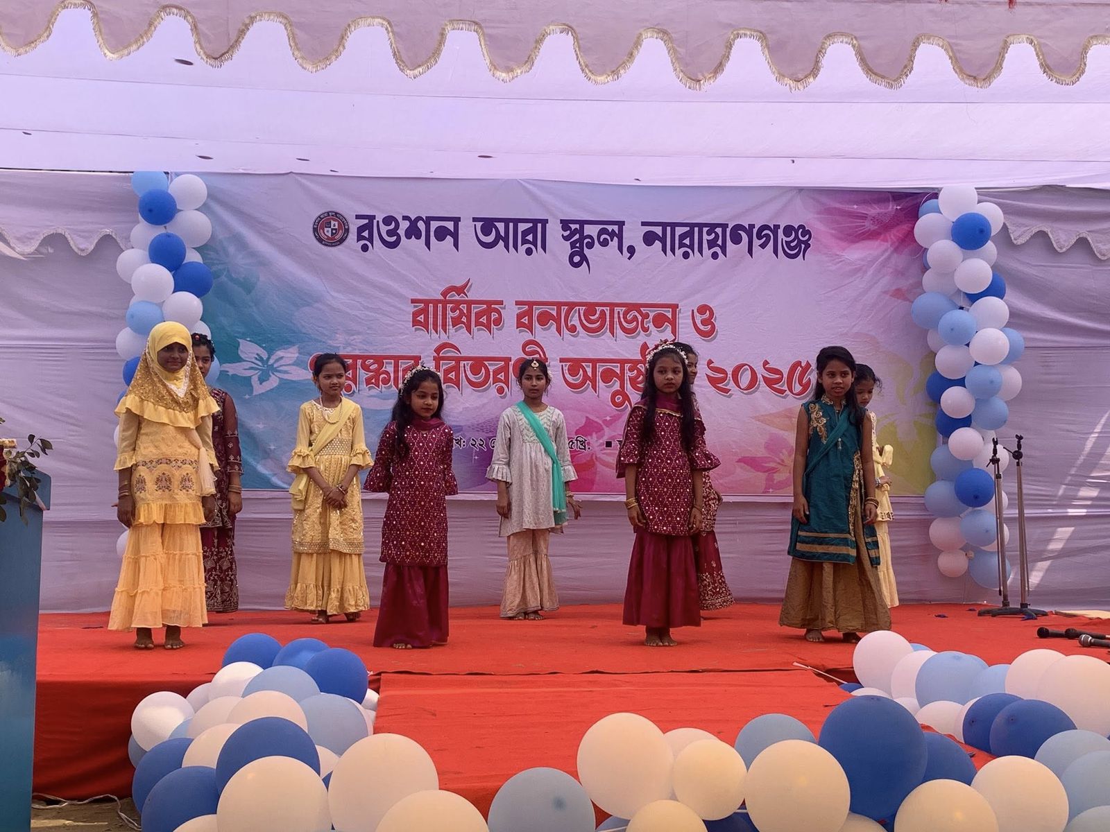 গত ২২ শে ফেব্রুয়ারি ২০২৫ অনুষ্ঠিত হয় রওশন আরা স্কুলের বার্ষিক বনভোজন ও পুরস্কার বিতরণী অনুষ্ঠান। উক্ত অনুষ্ঠানে উপস্থিত ছিলেন নারায়ণগঞ্জ কলেজের সম্মানিত অধ্যক্ষ জনাব রুম্মন রেজা স্যার, বিশিষ্ট শিক্ষাবিদ চেন্জেস স্কুলের পরিচালক জনাব মাকসুদ ইবনে রাহমান স্যার, রওশন আরা স্কুলের প্রতিষ্ঠাতা জনাব মালিক সোহেল সারোয়ার স্যার, পরিচালক জনাব সাইফুল ইসলাম পলাশ স্যার এবং প্রধান শিক্ষক ফারহানা হক ম্যাডাম। এছাড়াও বিদ্যালয়ের সকল শিক্ষকবৃন্দ, অভিভাবকবৃন্দ ও শিক্ষার্থীরা উপস্থিত ছিলেন।